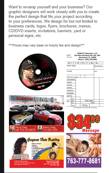 Flyers/Brochures Business Cards CD/DVD Inserts/Labels Signs/Banners Posters Calendars Advertising Materials